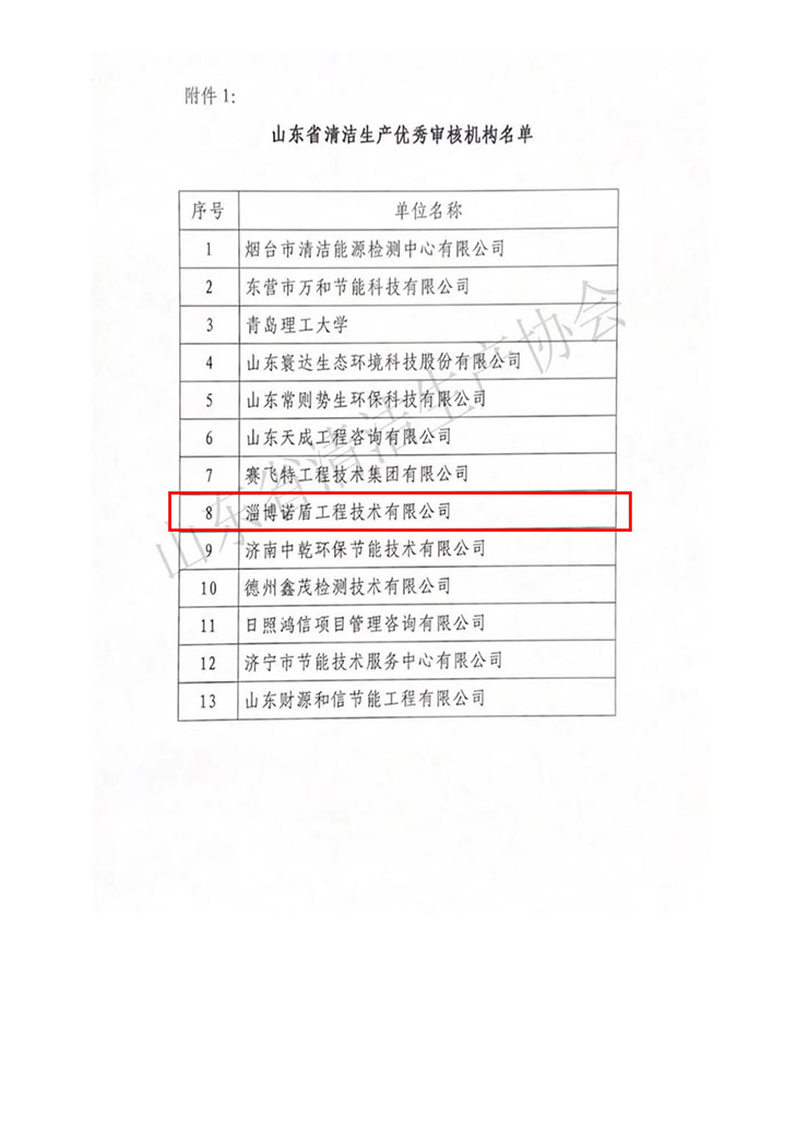 2021年度山东省优秀清洁生产审核机构